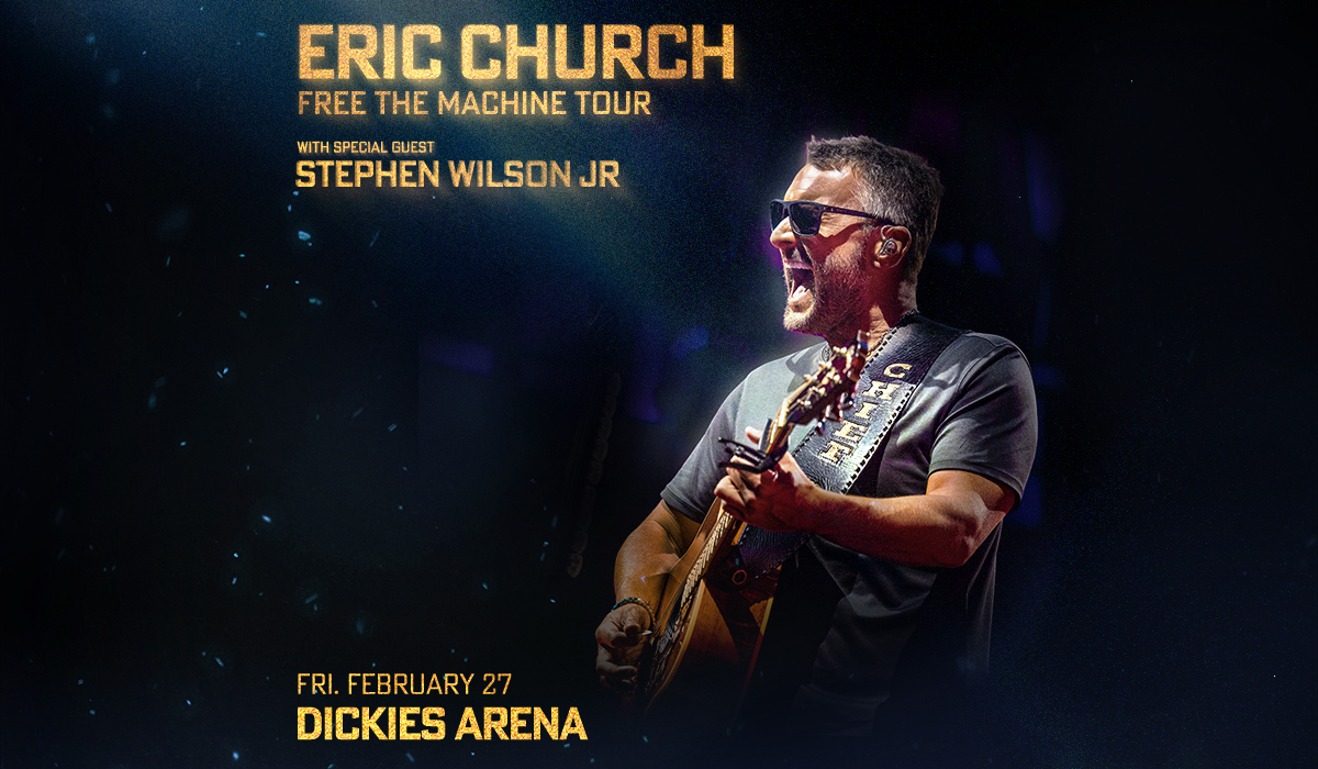 Eric Church returns to Dickies Arena Free The Machine Tour with special guest Stephen Wilson Jr on Friday, February 27, 2026.